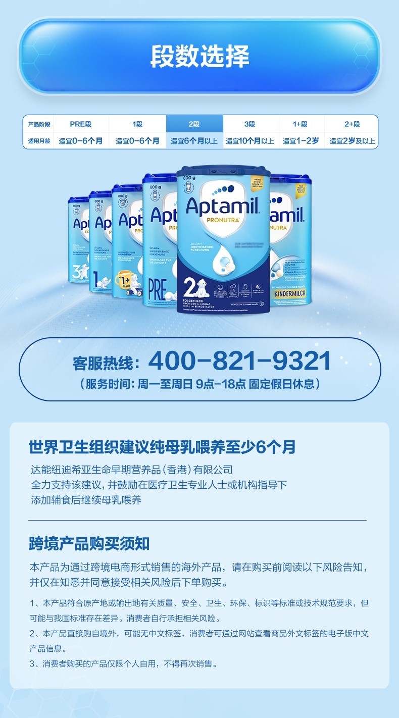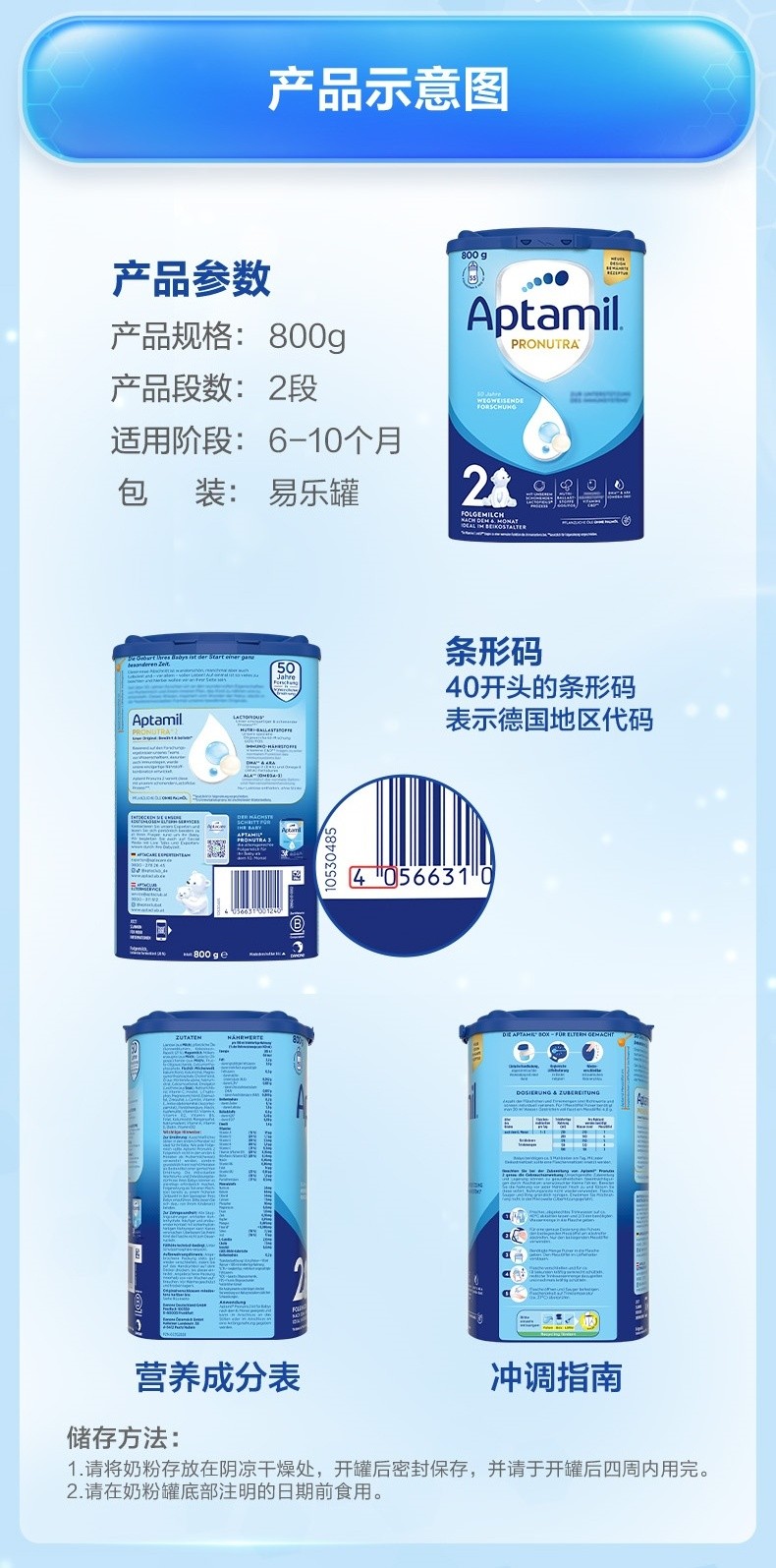 德国爱他美Aptamil婴儿配方奶粉2段800g 新旧随机发