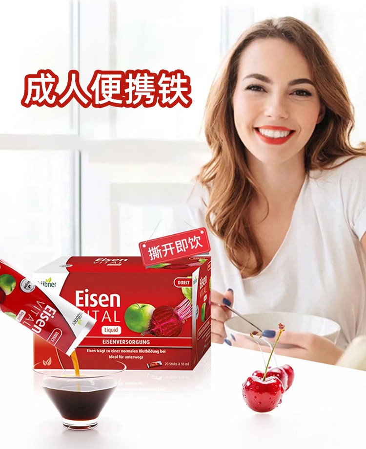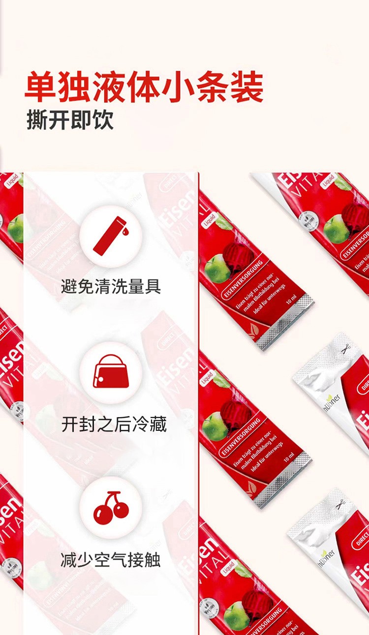 德国hübner郝柏娜 补铁补血口服液红铁元便携装 10ml*20条/盒