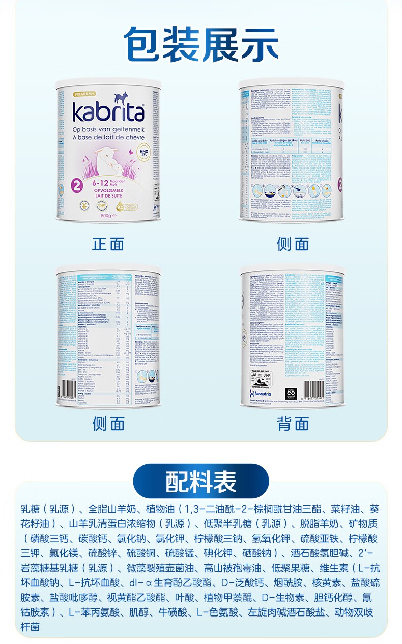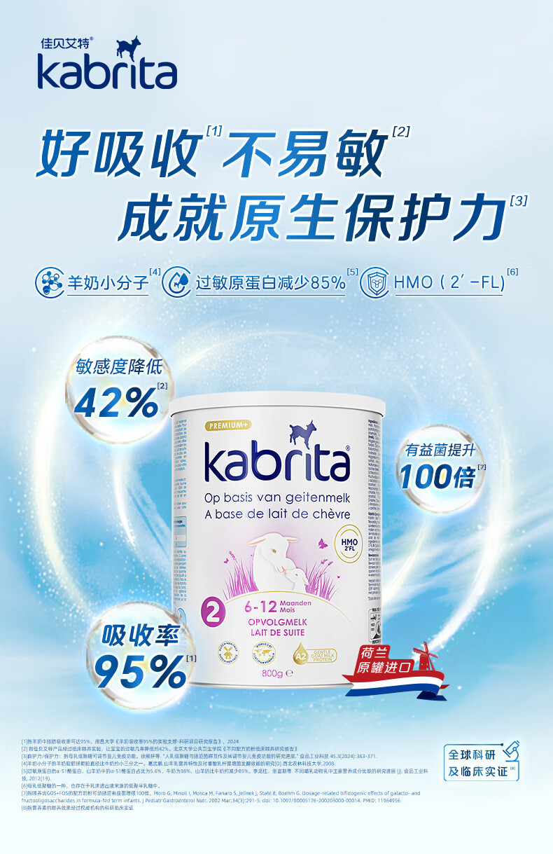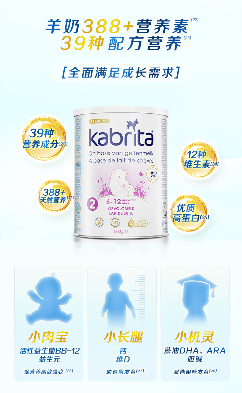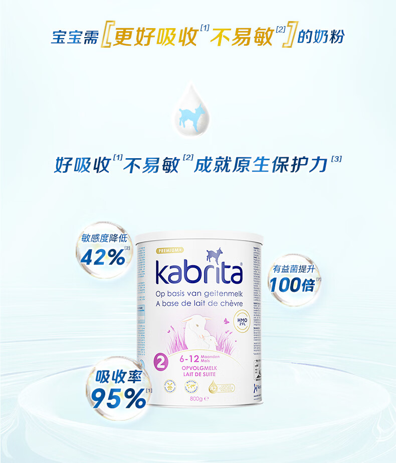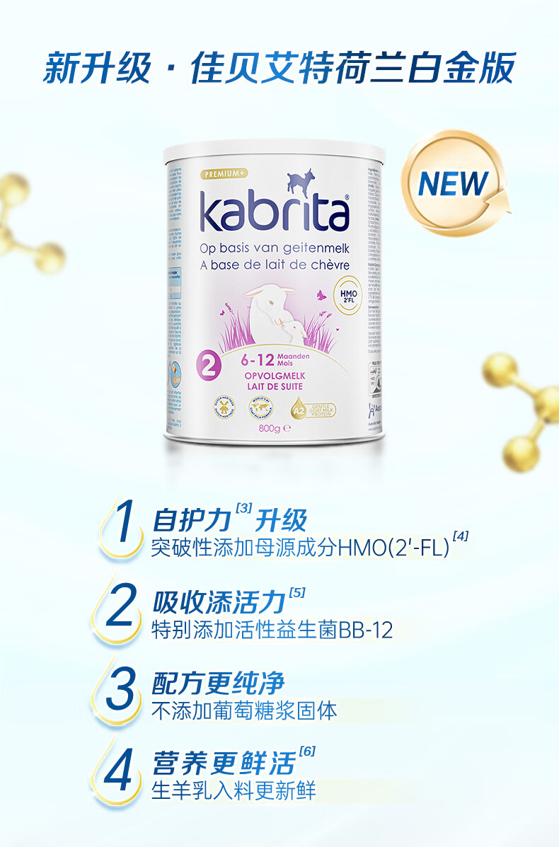 荷兰 佳贝艾特(Kabrita)金装婴幼儿羊奶粉2段800g 适合6-12个月