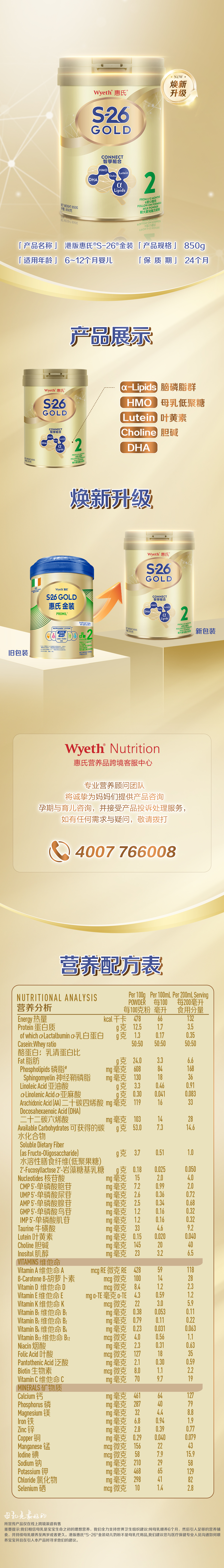 惠氏金装2段850g(新版)