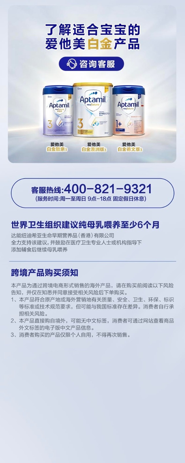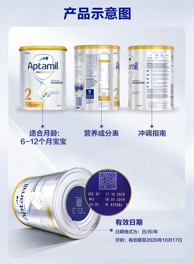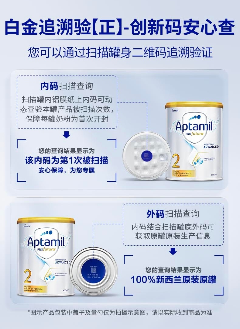 【禁淘拼公域单】澳洲Aptamil爱他美白金版较大婴儿配方奶粉2段800g