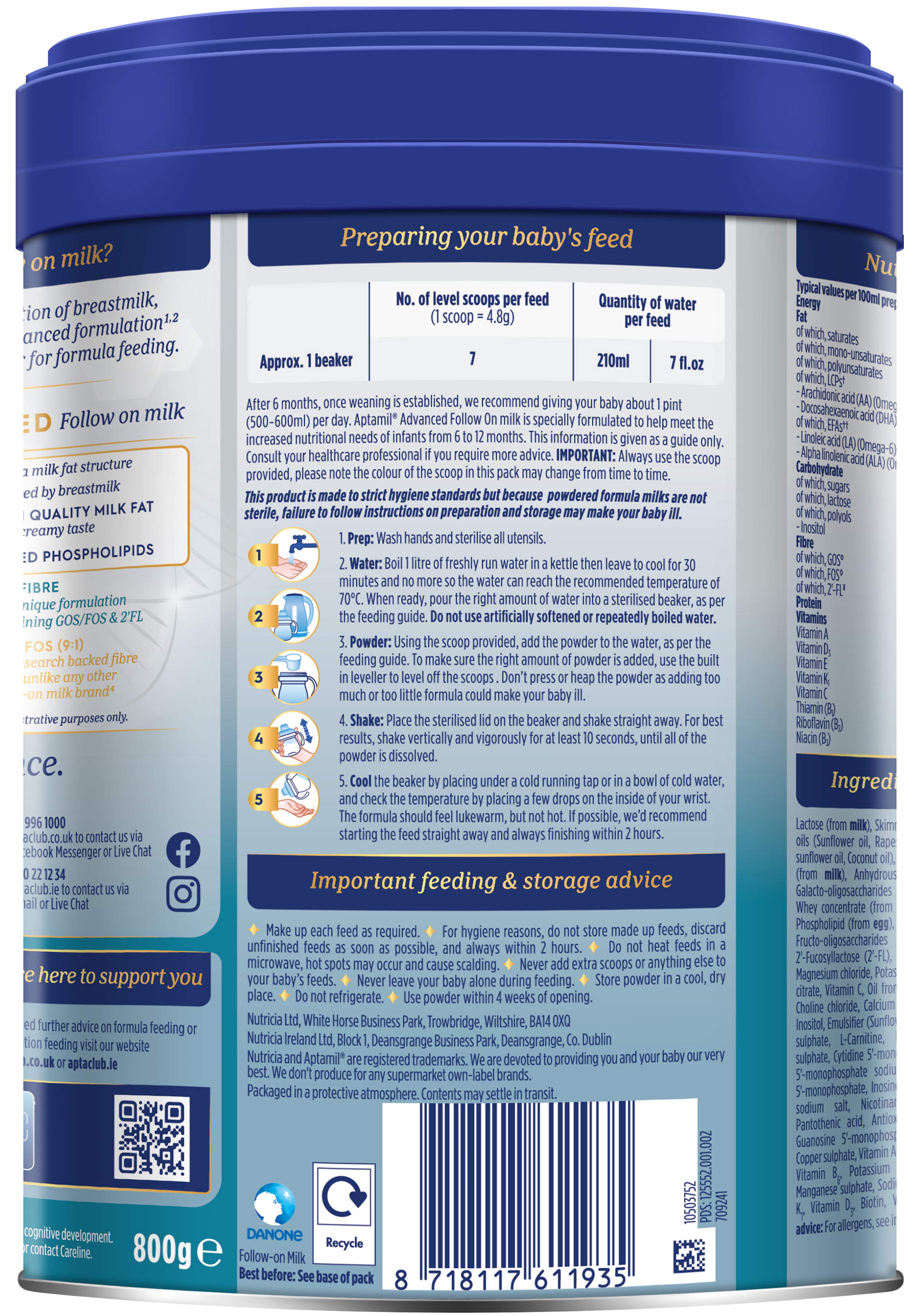 英国爱他美Aptamil白金版幼儿配方奶粉2段 6-12个月 800g 新旧随机发