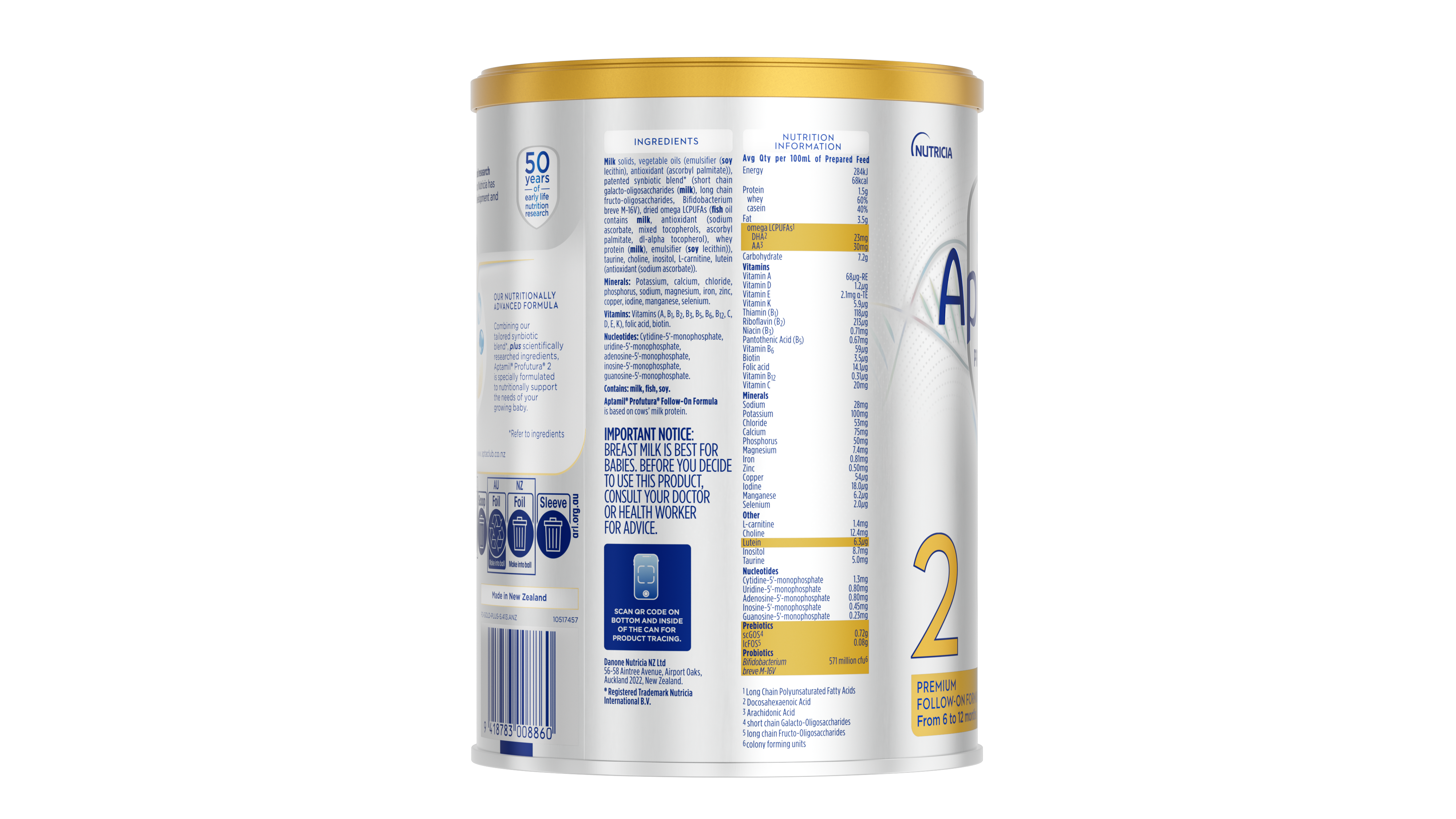 【禁淘拼公域单】澳洲Aptamil爱他美白金版较大婴儿配方奶粉1段800g