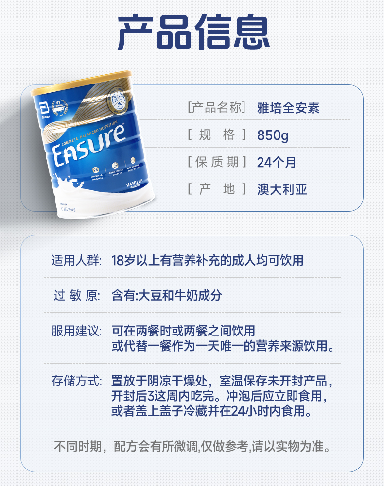 澳洲雅培Abbott Ensure成人大安素全营养粉850g(新旧版本随机)
