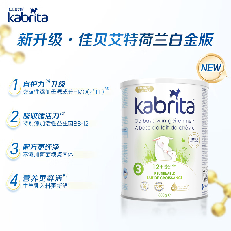 荷兰 佳贝艾特(Kabrita)金装婴幼儿羊奶粉3段800g(新包装)适合1岁以上