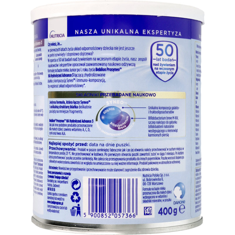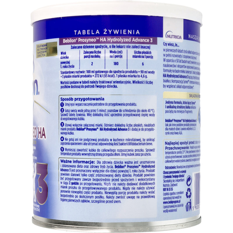 波兰Bebilon纽太特适度水解抗过敏配方奶粉3段(12个月以上)400g(HA版新包装)