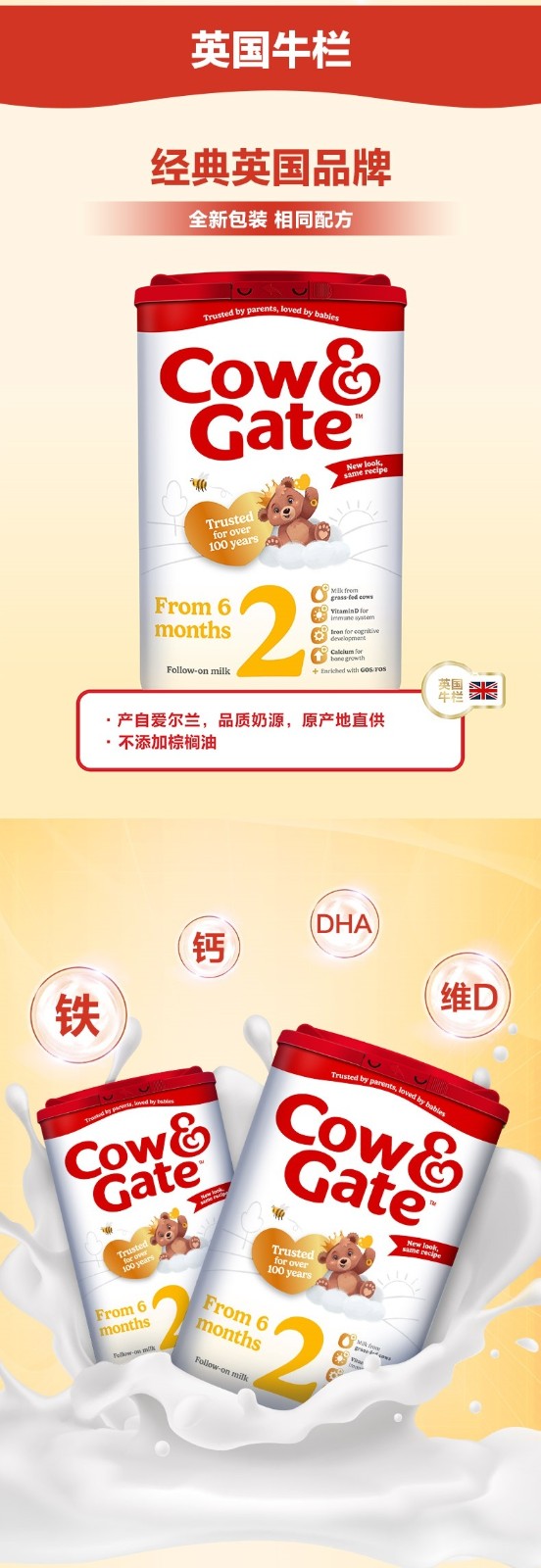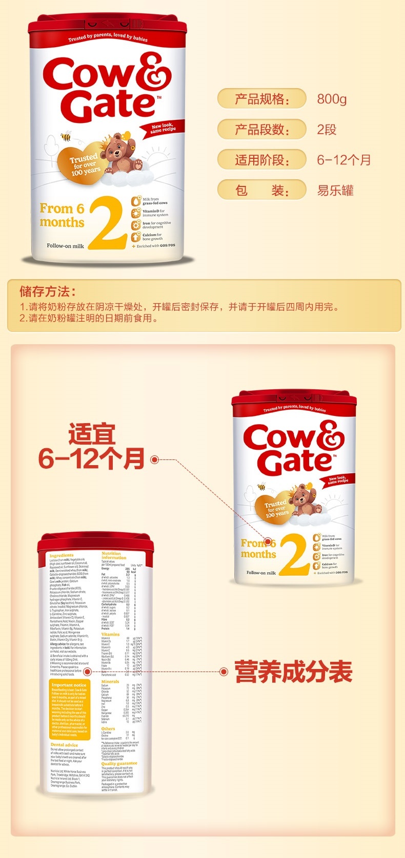 英国牛栏婴幼儿奶粉2段800g